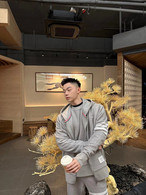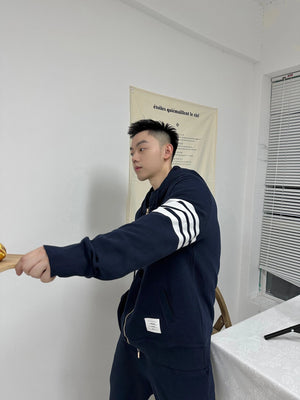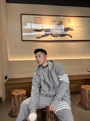 Thom Browne Jackets Water Ripple Waffle Zipper Coat for Men and Women