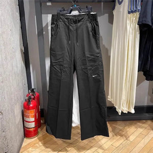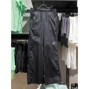 Nike Women's Embroidered Small Hook Drawstring Leisure Woven High Top Sports Wide-Leg Straight Pants Trousers FB8285