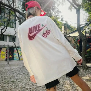 Nike Women's New Knitted Cotton Loose Sports and Leisure round Neck Pullover Long Sleeve T T-shirt FD9933