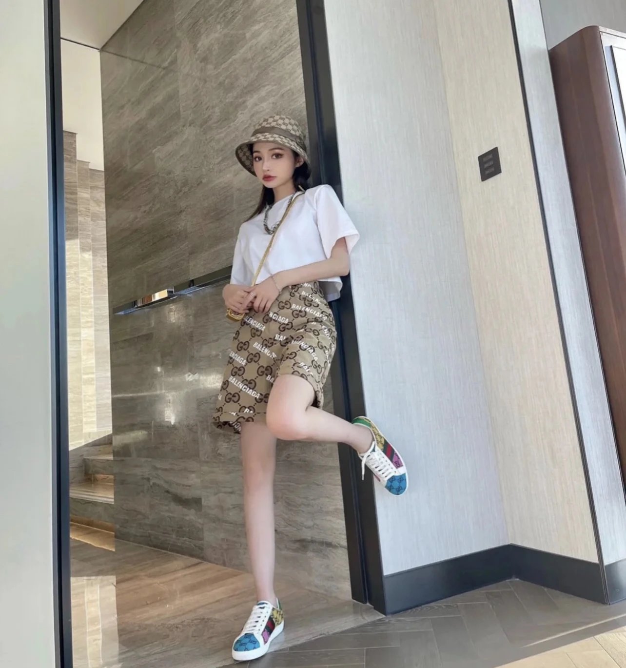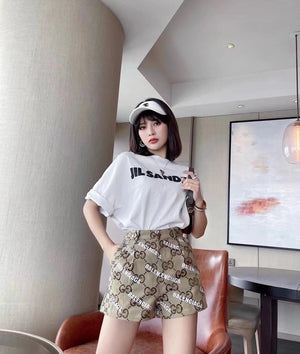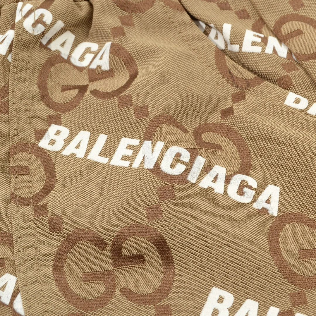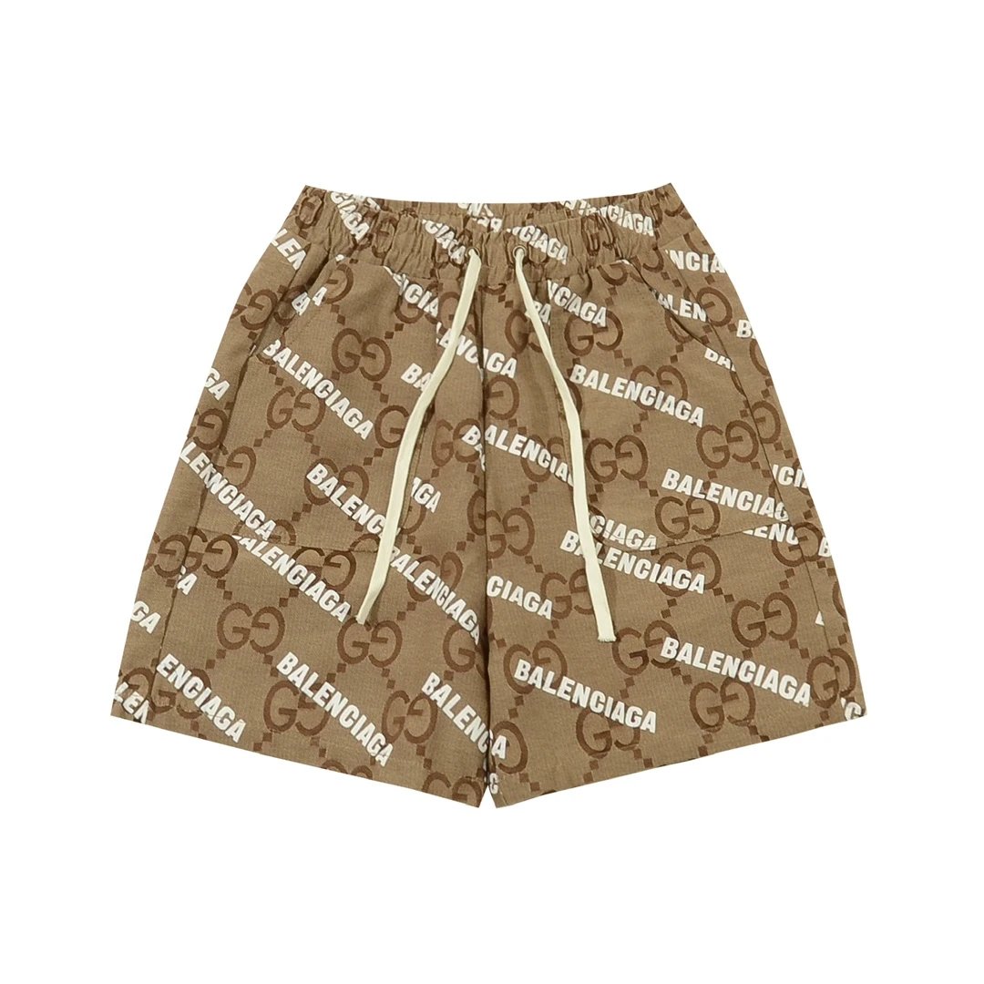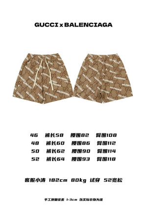 Gucci and Balenciaga Collaboration Classic Full Print Bullet Letter Logo Casual Couple Shorts - **Original Version