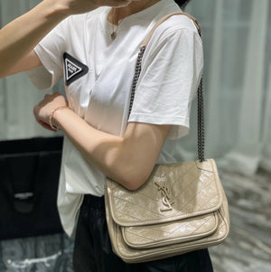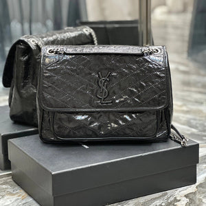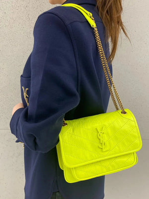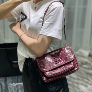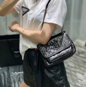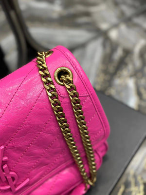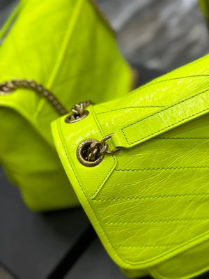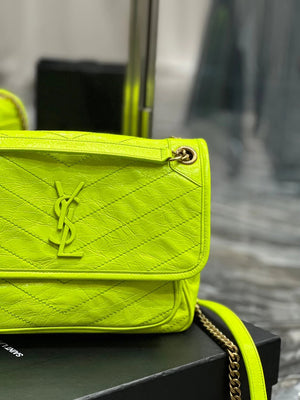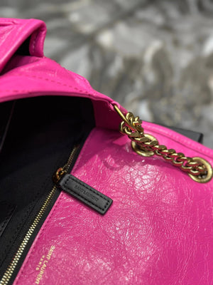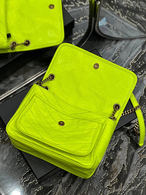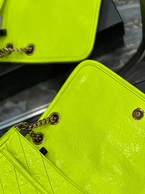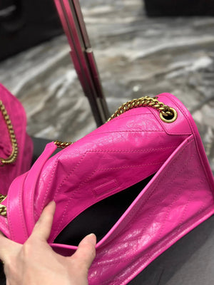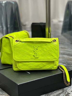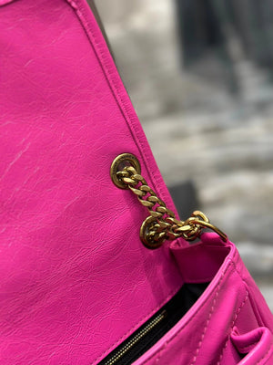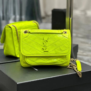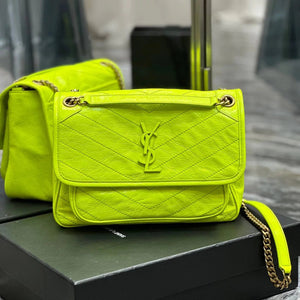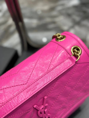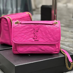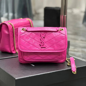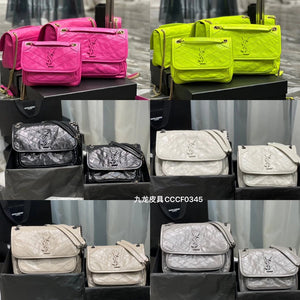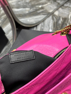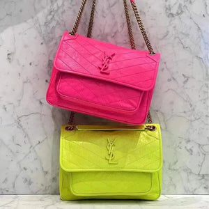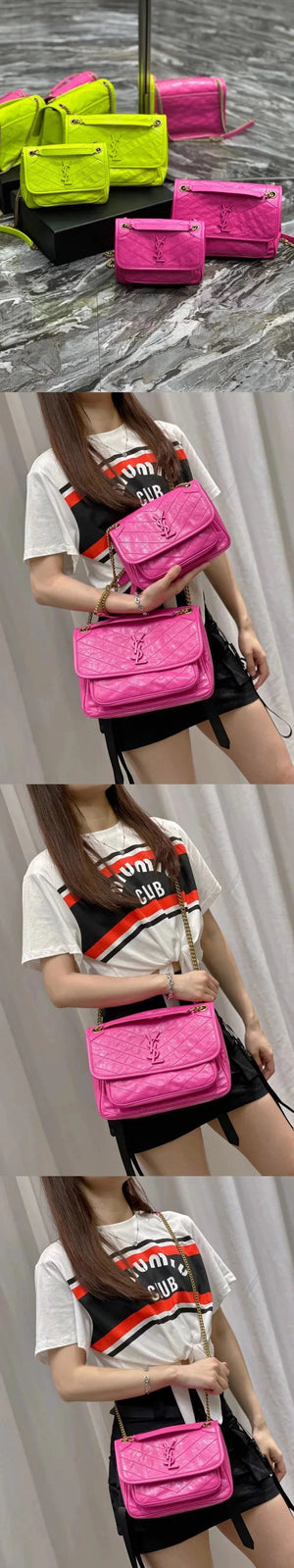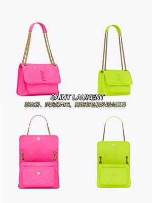 YSL Women's Bag Top version 【Premium Version】Classic hot selling product nikibaby_New Version Latest Color Matching niki Bag Fluorescent Green Barbie Pink Hobo Bag Shoulder Bag Messenger Bag New Niki Women's Bag New Version D Buckle Adjustment niki Medium